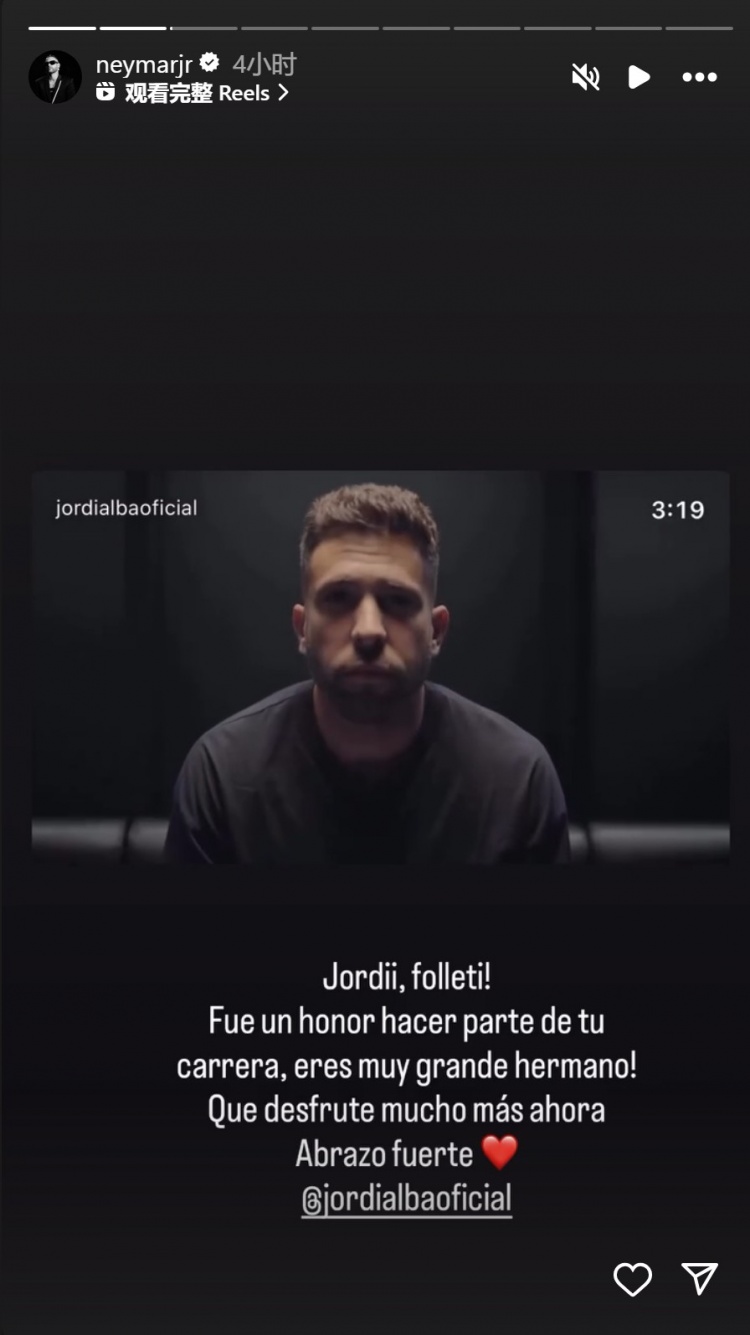 Alba sẽ nghỉ hưu sau khi kết thúc mùa giải này, và cựu đồng đội Neymar đã đăng một cống phẩm lên phương tiện truyền thông xã hội.